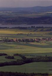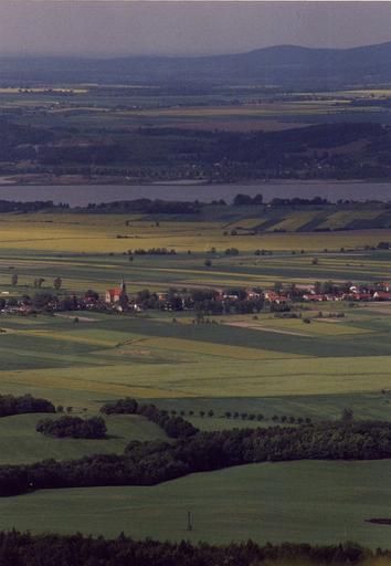 Keywords: Kamienica 4.jpg pl Widok na centralną cześć kamienicy z kościołem Sw Jerzego ze szczytu Wyskoki Kamień own Aleksander Sowa 2010-08-09 Kamienica Opole Voivodeship