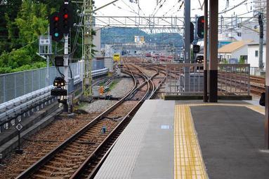 Keywords: Kanazawa hattsukei station kounai.JPG The view from the north end of the platforms at Kanazawa-hakkei Station on the Keikyu Main Line with the dual-gauge track from the J-TREC factory to Jimmuji Station ja 金沢八景駅品 方 にある 車輛製 横 製 まで伸びる三線軌 Own toshinori baba 2010-06-08 Kanazawa-Hakkei Station Railway signals in Japan Dual-gauge rail tracks in Japan June 2010 in Japan 2010 in rail transport in Japan Photographs taken on 2010-06-06 Taken with Nikon D40x