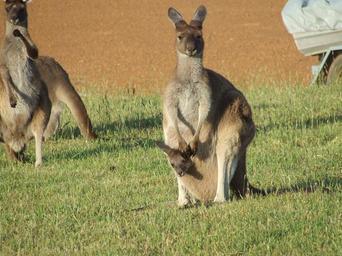 Keywords: Kangaroo&Joey.JPG Mother and lazy child kangaroo taken in Denmark western Australia Own 2007-11-29 Tom Lind Unidentified Macropus
