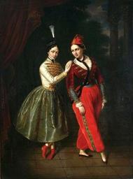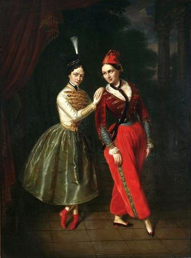 Keywords: Kaniewski Strauss sisters.jpg Artwork Creator Jan Ksawery Kaniewski ca 1853 Oil on canvas cm 107 79 Institution National Museum Warsaw Not on view accession number MP 5155 object history credit line K Kaniewski mal 185 signature/date The sisters were depicted in ballet costumes from the spectacle Asmodée or the devil in love to a libretto based on the novel by Jacques Cazotte 1719-1792 Karolina portrayed Leila-humble peasant Anna played the role of Satan's messenger Asmodée - in male costume with a velvet rope around the neck as a symbol of obedience http //cyfrowe mnw art pl/dmuseion/docmetadata id 3446 from publication cyfrowe mnw art pl See below PD-old-100 DEFAULTSORT 1860; Strauss sisters Jan Ksawery Kaniewski 19th-century Polish paintings in the National Museum in Warsaw 19th-century portrait paintings in the National Museum in Warsaw 1850s paintings in Poland 1853 oil on canvas paintings Portrait 1853 portrait paintings 19th-century family portraits 1853c 19th-century oil portraits of standing women at full length 1853c Ballet dancers from Poland Ballerinas in art Great Theatre in Warsaw Portrait paintings of sisters 1853c Red drapery in portrait paintings 1853c |