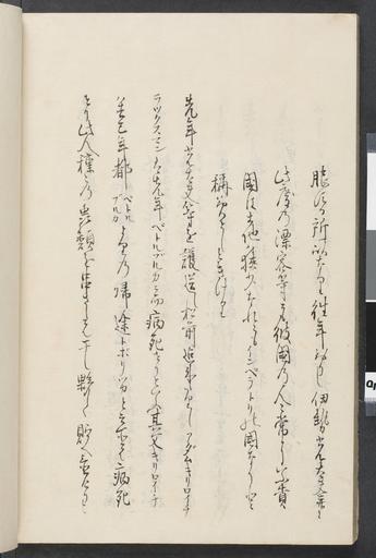 Keywords: Kankai ibun, (1807), vol. 8 (RBM-910-41-O88k-v8~096).jpg and travel Repository Email specol usc edu Geographic Subject Country Russia 1807 Atsuki Gentaku 1757-1827; a SSaeSS>>cae2C/ 1757-1827; Shimura KAkyA 1767-1843 http //digitallibrary usc edu/cdm/ref/collection/p15799coll58/id/20278 <br />1 File Kankai ibun 1807 vol 8 RBM-910-41-O88k-v8~001 jpg <br />2 File Kankai ibun 1807 vol 8 RBM-910-41-O88k-v8~002 jpg <br />3 File Kankai ibun 1807 vol 8 RBM-910-41-O88k-v8~003 jpg <br />4 File Kankai ibun 1807 vol 8 RBM-910-41-O88k-v8~004 jpg <br />5 File Kankai ibun 1807 vol 8 RBM-910-41-O88k-v8~005 jpg <br />6 File Kankai ibun 1807 vol 8 RBM-910-41-O88k-v8~006 jpg <br />7 File Kankai ibun 1807 vol 8 RBM-910-41-O88k-v8~007 jpg <br />8 File Kankai ibun 1807 vol 8 RBM-910-41-O88k-v8~008 jpg <br />9 File Kankai ibun 1807 vol 8 RBM-910-41-O88k-v8~009 jpg <br />10 File Kankai ibun 1807 vol 8 RBM-910-41-O88k-v8~010 jpg <br />11 File Kankai ibun 1807 vol 8 RBM-910-41-O88k-v8~011 jpg <br />12 File Kankai ibun 1807 vol 8 RBM-910-41-O88k-v8~012 jpg <br />13 File Kankai ibun 1807 vol 8 RBM-910-41-O88k-v8~013 jpg <br />14 File Kankai ibun 1807 vol 8 RBM-910-41-O88k-v8~014 jpg <br />15 File Kankai ibun 1807 vol 8 RBM-910-41-O88k-v8~015 jpg <br />16 File Kankai ibun 1807 vol 8 RBM-910-41-O88k-v8~016 jpg <br />17 File Kankai ibun 1807 vol 8 RBM-910-41-O88k-v8~017 jpg <br />18 File Kankai ibun 1807 vol 8 RBM-910-41-O88k-v8~018 jpg <br />19 File Kankai ibun 1807 vol 8 RBM-910-41-O88k-v8~019 jpg <br />20 File Kankai ibun 1807 vol 8 RBM-910-41-O88k-v8~020 jpg <br />21 File Kankai ibun 1807 vol 8 RBM-910-41-O88k-v8~021 jpg <br />22 File Kankai ibun 1807 vol 8 RBM-910-41-O88k-v8~022 jpg <br />23 File Kankai ibun 1807 vol 8 RBM-910-41-O88k-v8~023 jpg <br />24 File Kankai ibun 1807 vol 8 RBM-910-41-O88k-v8~024 jpg <br />25 File Kankai ibun 1807 vol 8 RBM-910-41-O88k-v8~025 jpg <br />26 File Kankai ibun 1807 vol 8 RBM-910-41-O88k-v8~026 jpg <br />27 File Kankai ibun 1807 vol 8 RBM-910-41-O88k-v8~027 jpg <br />28 File Kankai ibun 1807 vol 8 RBM-910-41-O88k-v8~028 jpg <br />29 File Kankai ibun 1807 vol 8 RBM-910-41-O88k-v8~029 jpg <br />30 File Kankai ibun 1807 vol 8 RBM-910-41-O88k-v8~030 jpg <br />31 File Kankai ibun 1807 vol 8 RBM-910-41-O88k-v8~031 jpg <br />32 File Kankai ibun 1807 vol 8 RBM-910-41-O88k-v8~032 jpg <br />33 File Kankai ibun 1807 vol 8 RBM-910-41-O88k-v8~033 jpg <br />34 File Kankai ibun 1807 vol 8 RBM-910-41-O88k-v8~034 jpg <br />35 File Kankai ibun 1807 vol 8 RBM-910-41-O88k-v8~035 jpg <br />36 File Kankai ibun 1807 vol 8 RBM-910-41-O88k-v8~036 jpg <br />37 File Kankai ibun 1807 vol 8 RBM-910-41-O88k-v8~037 jpg <br />38 File Kankai ibun 1807 vol 8 RBM-910-41-O88k-v8~038 jpg <br />39 File Kankai ibun 1807 vol 8 RBM-910-41-O88k-v8~039 jpg <br />40 File Kankai ibun 1807 vol 8 RBM-910-41-O88k-v8~040 jpg <br />41 File Kankai ibun 1807 vol 8 RBM-910-41-O88k-v8~041 jpg <br />42 File Kankai ibun 1807 vol 8 RBM-910-41-O88k-v8~042 jpg <br />43 File Kankai ibun 1807 vol 8 RBM-910-41-O88k-v8~043 jpg <br />44 File Kankai ibun 1807 vol 8 RBM-910-41-O88k-v8~044 jpg <br />45 File Kankai ibun 1807 vol 8 RBM-910-41-O88k-v8~045 jpg <br />46 File Kankai ibun 1807 vol 8 RBM-910-41-O88k-v8~046 jpg <br />47 File Kankai ibun 1807 vol 8 RBM-910-41-O88k-v8~047 jpg <br />48 File Kankai ibun 1807 vol 8 RBM-910-41-O88k-v8~048 jpg <br />49 File Kankai ibun 1807 vol 8 RBM-910-41-O88k-v8~049 jpg <br />50 File Kankai ibun 1807 vol 8 RBM-910-41-O88k-v8~050 jpg <br />51 File Kankai ibun 1807 vol 8 RBM-910-41-O88k-v8~051 jpg <br />52 File Kankai ibun 1807 vol 8 RBM-910-41-O88k-v8~052 jpg <br />53 File Kankai ibun 1807 vol 8 RBM-910-41-O88k-v8~053 jpg <br />54 File Kankai ibun 1807 vol 8 RBM-910-41-O88k-v8~054 jpg <br />55 File Kankai ibun 1807 vol 8 RBM-910-41-O88k-v8~055 jpg <br />56 File Kankai ibun 1807 vol 8 RBM-910-41-O88k-v8~056 jpg <br />57 File Kankai ibun 1807 vol 8 RBM-910-41-O88k-v8~057 jpg <br />58 File Kankai ibun 1807 vol 8 RBM-910-41-O88k-v8~058 jpg <br />59 File Kankai ibun 1807 vol 8 RBM-910-41-O88k-v8~059 jpg <br />60 File Kankai ibun 1807 vol 8 RBM-910-41-O88k-v8~060 jpg <br />61 File Kankai ibun 1807 vol 8 RBM-910-41-O88k-v8~061 jpg <br />62 File Kankai ibun 1807 vol 8 RBM-910-41-O88k-v8~062 jpg <br />63 File Kankai ibun 1807 vol 8 RBM-910-41-O88k-v8~063 jpg <br />64 File Kankai ibun 1807 vol 8 RBM-910-41-O88k-v8~064 jpg <br />65 File Kankai ibun 1807 vol 8 RBM-910-41-O88k-v8~065 jpg <br />66 File Kankai ibun 1807 vol 8 RBM-910-41-O88k-v8~066 jpg <br />67 File Kankai ibun 1807 vol 8 RBM-910-41-O88k-v8~067 jpg <br />68 File Kankai ibun 1807 vol 8 RBM-910-41-O88k-v8~068 jpg <br />69 File Kankai ibun 1807 vol 8 RBM-910-41-O88k-v8~069 jpg <br />70 File Kankai ibun 1807 vol 8 RBM-910-41-O88k-v8~070 jpg 220px left 220px left 220px left 220px left 220px left 220px left 220px left 220px left 220px left 220px left 220px left 220px left 220px left 220px left 220px left 220px left 220px left 220px left 220px left 220px left 220px left 220px left 220px left 220px left 220px left 220px left 220px left 220px left 220px left 220px left 220px left 220px left 220px left 220px left 220px left 220px left 220px left 220px left 220px left 220px left 220px left 220px left 220px left 220px left 220px left 220px left 220px left 220px left 220px left 220px left clear <br />122 File Kankai ibun 1807 vol 8 RBM-910-41-O88k-v8~122 jpg <br />123 File Kankai ibun 1807 vol 8 RBM-910-41-O88k-v8~123 jpg <br />124 File Kankai ibun 1807 vol 8 RBM-910-41-O88k-v8~124 jpg <br />125 File Kankai ibun 1807 vol 8 RBM-910-41-O88k-v8~125 jpg <br />126 File Kankai ibun 1807 vol 8 RBM-910-41-O88k-v8~126 jpg <br />127 File Kankai ibun 1807 vol 8 RBM-910-41-O88k-v8~127 jpg <br />128 File Kankai ibun 1807 vol 8 RBM-910-41-O88k-v8~128 jpg <br />129 File Kankai ibun 1807 vol 8 RBM-910-41-O88k-v8~129 jpg <br />130 File Kankai ibun 1807 vol 8 RBM-910-41-O88k-v8~130 jpg <br />131 File Kankai ibun 1807 vol 8 RBM-910-41-O88k-v8~131 jpg <br />132 File Kankai ibu