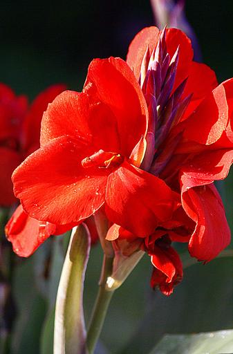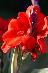 Keywords: kanna kanna red flowers red flowering closeup boost flower buds floral cup the stem green yellow plant flower a flower garden ornamental plants flora summer insolence dumność morning light red