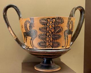 Keywords: Kantharos sphinxes Louvre CA1339.jpg Sphinxes side B from a Boeotian black-figure kantharos ca 550 BC Sphinx face B d'un canthare béotien à figures noires vers 550 av J -C H 22 cm 8 ½ in Diam 19 8 cm 7 ¾ in Museum Louvre Department of Greek Etruscan and Roman antiquities in the Louvre Sully first floor room 42 object history credit line Purchase 1900 accession number CA 1339 Jastrow 2006 other versions Ancient Greek kantharoi Sphinxes in ancient Greek pottery Boeotian black-figure pottery Greek antiquities in the Louvre - Room 42 |