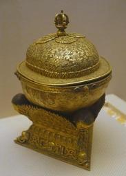 | Keywords: Kapala bowl, Tibet, 1644-1911 AD, bone, gilt copper, semi-precious stones - Sichuan Provincial Museum - Chengdu, China - DSC04438.jpg en Exhibit in the Sichuan Provincial Museum 四 博物院 also known as the Sichuan Museum 251 Huanhua S Road Chengdu Sichuan China Photography was permitted in the museum without restriction This work is old enough so that it is in the public domain 2015-09-24 02 26 48 own Daderot other versions PD-old-100 cc-zero Metalwork of Tibet in the Sichuan Provincial Museum Kapala ritual cup |