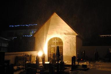 Keywords: Kapelle der Kirche Nesselwängle.jpg Die kleine Kapelle in rot-orangenes Licht getaucht auf dem Friedhof neben der Kirche des Ortes Nesselwängle Tirol Österreich am 1 Januar 2010 abends im dichten Schneefall The small chapel at the cemetery next to the church of W Nesselwängle Tyrol state Tyrol Austria at the evening in a small snow flurry D3000 own kaʁstn <small>Disk/Cat</small> 2010-01-01 Other versions 47 485304 10 60941 region AT-7_type landmark Photographs by Carschten Taken with AF-S DX Zoom-Nikkor 18-55mm/3 5-5 6G ED II Cemetery chapel at Mariä Himmelfahrt Nesselwängle Snow flurry Buildings and structures in Austria at night |