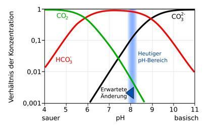Keywords: Karbonatsystem Meerwasser de.svg Benutzer Hardern nach einem Eintrag auf der Seite Grafikwünsche Als Vorlage dienten Abbildung auf http //www wbgu de/wbgu_sn2006 pdf Seite 68 und Abbildung auf http //www royalsoc ac uk/displaypagedoc asp id 13539 Seite 6 2007-05-01 BeAr Der Pfeil skizziert die erwartete Verschiebung des mittleren pH-Werts wenn die atmosphärische CO2-Konzentration etwa 750 ppm erreicht inkscape Translation possible Water diagrams Dissociation diagrams |