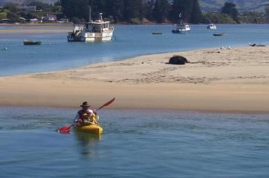 Keywords: Karitane Channel.JPG en a Kayak in the Harbor Channel at Karatane Otago NZ with Sea Lion on the Beach Own Motorau 2006-09-29 Public Domain Larger Format East Coast South Island New Zealand sub 45 degrees south Karitane Kayaking in New Zealand |