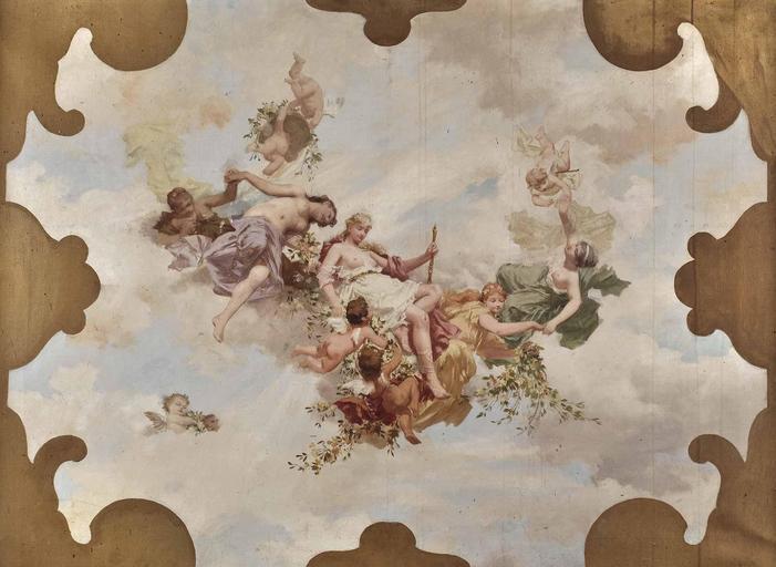 Keywords: Karl Johann Peyfuss Flora und drei schwebende Genien.jpg Allegorie Entwurf für ein Deckengemälde oil on canvas ca 85 x 115 cm http //www dorotheum com Dorotheum ~ 1891 Creator Carl Johann Peyfuss PD-old-70-1923 Images from Dorotheum Carl Johann Peyfuss Paintings of Flora dea Schloss Büchsenhausen |