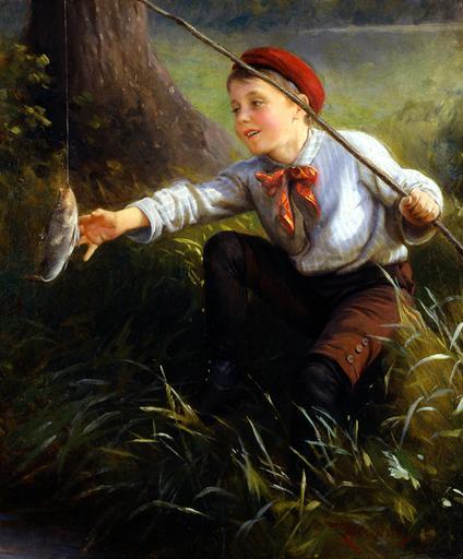 Keywords: Karl Witkowski - Caught One.jpg Artwork Creator Karl Witkowski Caught One oil canvas 24 x 20 in signed in red lower right K Witkowski http //americangallery wordpress com/category/witkowski-karl/<br /> http //www rehs com/view_image html image_no 582 inq 1 PD-old-100 Karl Witkowski 19th-century paintings from the United States Paintings of boys |