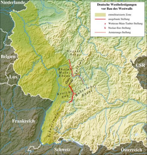 Keywords: Karte Deutsche Westbefestigungen vor Westwall.png Die deutschen Westbefestigungen vor dem Bau des Westwalls Wetterau-Main-Tauber-Stellung und Neckar-Enz-Stellung German western line of defence before builing the Westwall Wetterau-Main-Tauber-Stellung and Neckar-Enz-Stellung PNG conversion of Image Karte_Deutsche_Westbefestigungen_vor_Westwall svg 2008-10-20 K Jähne kjunix de Neckar-Enz-Stellung Maps of the history of Baden-Württemberg Verteidigungslinien |