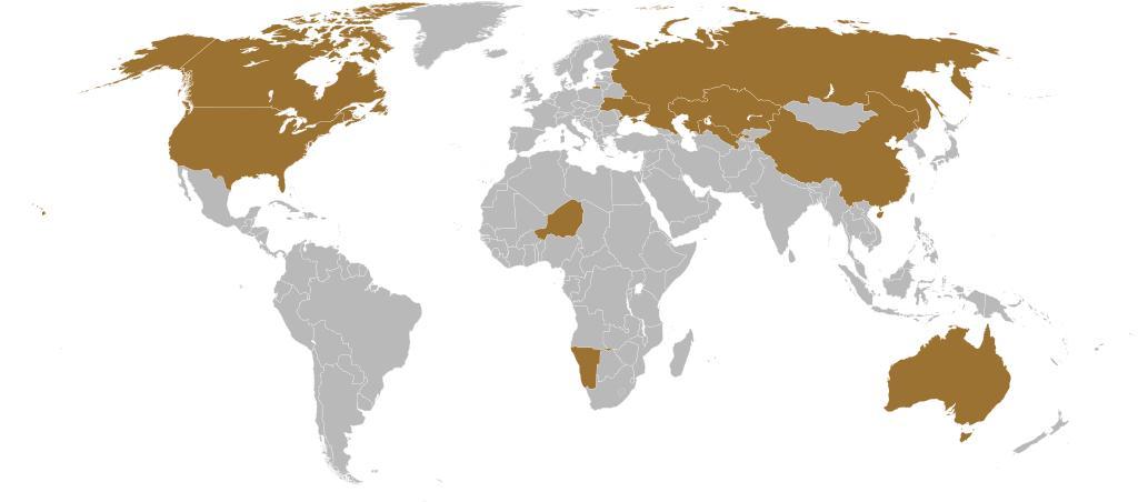 Keywords: Karte Urangewinnung.svg Die 10 Staaten mit der weltweit höchsten Menge an gefördertem Uran 2008 File BlankMap-World6 compact svg data from Uran/Tabellen und Grafiken German Wikipedia de 2010-05-05 Carport 130px PNG version Uranium Membership maps of the world |