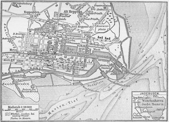| Keywords: Karte Wilhelmshaven MKL1888.png PD-Meyers Maps of cities Meyers Konversationslexikon 4th edition Wilhelmshaven Old maps of cities in Germany Wilhelmshaven Wilhelmshaven in the 1880s 1888 Karte Maps of Jadebusen Wilhelmshaven 1888 Innenjade Karte Historical maps of Wilhelmshaven 1888 Bauhafen Wilhelmshaven Karte Ausrüstungshafen Wilhelmshaven Karte Handelshafen Wilhelmshaven Karte | ||||