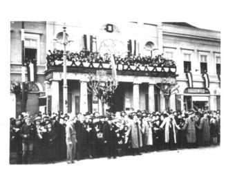 Keywords: Kassa, 1938. november 10-11 (2).tif hu A fénykép 1938 november 10 -én vagy 11 -én készült Magyar Királyság Kassa Kassa köszönti a bevonuló magyar hadsereget Szöveg a képeslap hátoldalán A FELVIDÉK FELSZABADULÁSÁNAK EMLÉKÉRE Kassa 1938 NOV 10-11Vitéz nagybányai Horthy Miklós Magyarország Kormányzója Szatmárnémetiben 1940 szept 5 Magyar Film Iroda Kiadása Sárai Budapest Rotációs Fényképsokszorosító Alkalmi bélyegzés Kassa visszatért A magyar honvédség november 10-én vette át Kassát a lakosság örömujjongása közepette Wirth Gyula építészmérnök a Magyar Nemzet Tanács elnöke fogadja a magyar honvédséget Kassa szabad királyi város Magyar Nemzeti Tanácsa élén boldogságtól túláradó szívvel köszöntöm önt altábornagy úr vitéz honvédségünk élén mondja vitéz Littay-Lichtenecker András altábornagynak a miskolci 7 vegyesdandár parancsnokának Forrás Metapolisz Images ©© Derzsi Elekes Andor Budapest 2014 A kép és filmfelvétel egészben vagy részletekben másolását bármilyen úton történő sokszorosítását és felhasználását a szerző ellenérték nélkül jogutódjaira is kihatóan megengedi Az engedély kiterjed a kereskedelmi célú hasznosításra is Kéri azonban a felhasználás során feltüntetni hogy a kép forrása a Metapolisz Images A Metapolisz sorozat valamennyi képe és filmje Creative Commons alatti valamint kereskedelmi - for profit - célra is felhasználható Ajánlott hivatkozás Derzsi Elekes Andor Metapolisz DVD line http //nektar oszk hu/en/manifestation/2623913 Forrás Balassa Zoltán Kassa és 1938 békés novembere http //www felvidek ma/kapcsolat/tajolo/multidezo/42564-kassa-es-1938-bekes-novembere hozzáférés 2014 01 17 Horthy kassai bevonulása http //www youtube com/watch v tD5VxkOl-A4 hozzáférés 2014 01 17 Észak felé - A visszatért Kassa első napja 19381111 http //www youtube com/watch v fW_5lgNWT_4 hozzáférés 2014 01 17 2014-01-17 19 38 53 Metapolisz Images Sárai Budapest Rotációs Fényképsokszorosító scanned by Derzsi Elekes Andor Custom license marker 2014 01 17 PD-old 1938 in Košice Metapolisz Miklós Horthy Uploaded with UploadWizard First Vienna Award 1938 photographs Photos by Elekes Andor |
