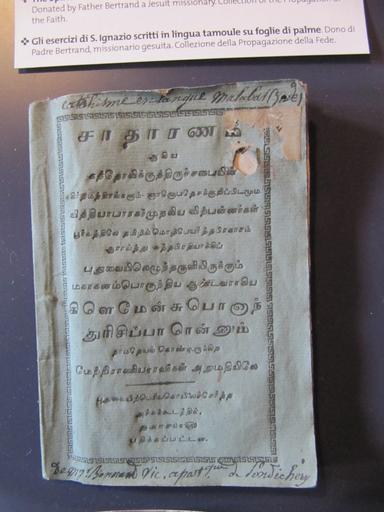 | Keywords: Katexizis.jpg ru Катехизис на тамильском языке Из фондов музея Дом Паулины Жа ико Лион Ф анция ta 1841இல் புதுவை மிஷன் அச்சகத்தில் அச்சிடப்பட்ட திருமறைச்சுவடி இது தந்தை பெர்டிரான்டினால் உரோமை மறைபறப்பு பேராயத்திற்கு அளிக்கப்பட்டு இப்போது பிரான்சில் உள்ள அருங்காட்சியகத்தில் உள்ளது en Catechism book printed in Mission press by Clément Bonnand in 1841 donated by Fr Brertrand S J to the Congregation of propagation of faith is now preserved in a Museum in France own Rartat 2010-03-20 Roman Catholicism in India Clément Bonnand |