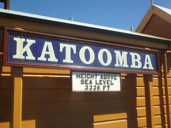 Keywords: Katoomba station sign.JPG en Katoomba railway station a little more than a kilometer over the sea level 2013-04-02 06 00 08 own Ypsilon from Finland cc-zero Uploaded with UploadWizard Katoomba railway station New South Wales