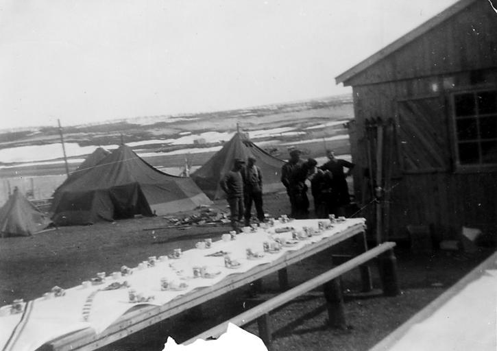 Keywords: andre verdenskrig andreverdenskrig frigjøring feiring vårslipp 2015 vårslipp2015 kautokeino / guovdageainnu kautokeinoguovdageainnu finnmark norge blackandwhite monochrome outdoor black and white Original bildetekst: Vi stekte vafler, dekket bord ute, kokkene som bor i teltene her, kokte kakao, ellers hadde vi en pakke kjeks, og en plate melkesjokolade til hver. Gjestene kom og man gikk til bords, barn i alle aldre. Fotografiet kommer fra et album gitt til Riksarkivet av sykepleier Marie Lysnes. Våren 1945 deltok hun i opprettelsen av et feltsykehus i Finnmark. Lysnes dokumenterte oppholdet i Finnmark gjennom tekst og bilder. Albumet er en del av privatarkivet etter Marie Lysnes. Arkivreferanse: PA-0873: Lysnes, Marie, Riksarkivet. Original bildetekst: Vi stekte vafler, dekket bord ute, kokkene som bor i teltene her, kokte kakao, ellers hadde vi en pakke kjeks, og en plate melkesjokolade til hver. Gjestene kom og man gikk til bords, barn i alle aldre. Fotografiet kommer fra et album gitt til Riksarkivet av sykepleier Marie Lysnes. Våren 1945 deltok hun i opprettelsen av et feltsykehus i Finnmark. Lysnes dokumenterte oppholdet i Finnmark gjennom tekst og bilder. Albumet er en del av privatarkivet etter Marie Lysnes. Arkivreferanse: PA-0873: Lysnes, Marie, Riksarkivet. |