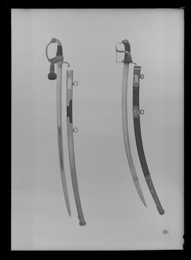 Keywords: Kavalleriofficerssabel, Sverige, 1800-talets första hälft, fäste av s. k - Livrustkammaren - 35806.tif Fäste av förgylld reliefornerade mässing kappa framtill i form av ett lejonhuvud med manen inramad av en slät list och baktill övergående i en nedåtgående hylsa utgörande kavelns överdel denna ornerad med stiliserade blad Handbygel i sin helhet bågformig överdelen intappad i lejongapet Mellandelen på båda sidor med ranka av klockformiga blad på mitten avbruten av en långsträckt rosett Bakre parerstång nedåtböjd ornerad med enkla snedställda blad och avslutad med en liten rosettornerad skiva Styrskenor stora formade som romber med insvängda sidor och tvärt avskurna hörn samt ornerade med en bröstbild av Minerva i profil åt v <br/>Kavel av ebenholts med mjukt rektangulärt tvärsnitt ut- och insidan med tätt inskuret rombiskt rutmönster <br/><br/>Klinga böjd eneggad högglanspolerad med vulstformig rygg Det 332 mm långa spetspartiet tvåeggat eggen dock oslipad original caption ca other date - 1800 1850 steel b2 - blankvapen - klinga material stål - brass b1 - blankvapen - fäste material mässing - ebony b6 - blankvapen - kavel och kavelklädsel material ebenholts size mm 1026 size mm 128 size mm 883 klinga size mm 32 klinga g 900 LRK Gustav hertig av Uppland prins 1827-1852 Haga slott Sverige place of origin original filename LN_B12744_015624 42173 inventory number LRK 5549 35806 CC0 Kavalleriofficerssabel Sverige 1800-talets första hälft fäste av s k - Livrustkammaren - 35806-negative tif <gallery caption Different images of same object > File Kavalleriofficerssabel Sverige 1800-talets första hälft fäste av s k - Livrustkammaren - 60708 tif </gallery> Media contributed by LSH dim-with multiple size templates Sabres of Sweden Cavalry sabres images from livrustkammaren Media contributed by LSH 2013-10 |