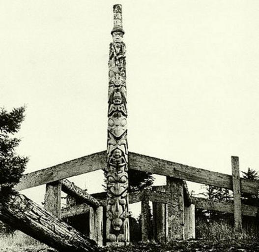 Keywords: Kayung Pole.jpg Charles F Newcombe http //www cathedralgrove eu/text/07-Totem-Websites-1 htm Charles F Newcombe maybe 1884 PD-old Totem poles in British Columbia House frontal pole Haida British Museum 1850 sculptures Plank houses of Native Americans |