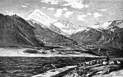 | Keywords: Kazbek (Veidenbaum guide).jpg en View of Kazbek From the Caucasus guidebook of 1888 2011-04-22 Е Вейденбаум Путеводитель по Кавказу Тифлис 1888 год Типог афия Канцеля ии Главноначальствующего г ажданской частью на Кавказе V Stakhovsky PD-old Uploaded with UploadWizard Kazbek Georgia in the 1880s |