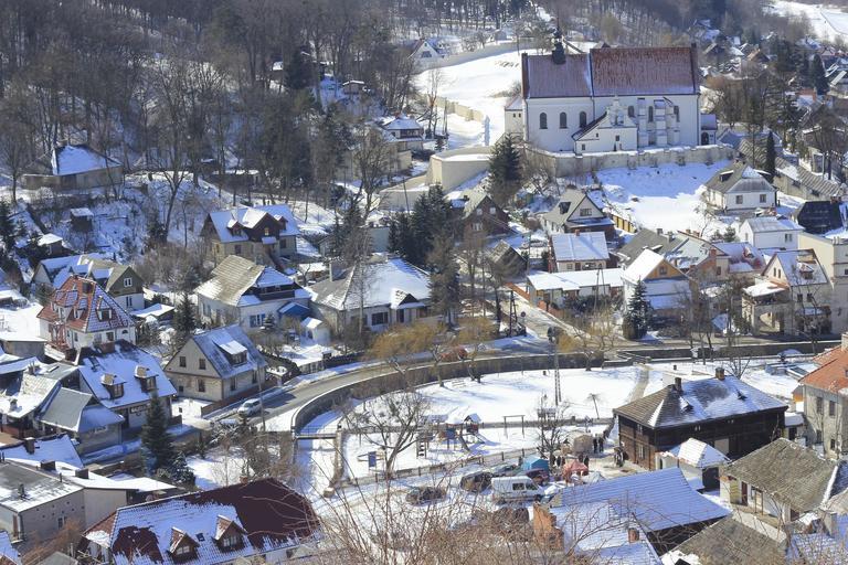 Keywords: kazimierz dolny panorama of the city city view architecture buildings winter snow lubelskie poland