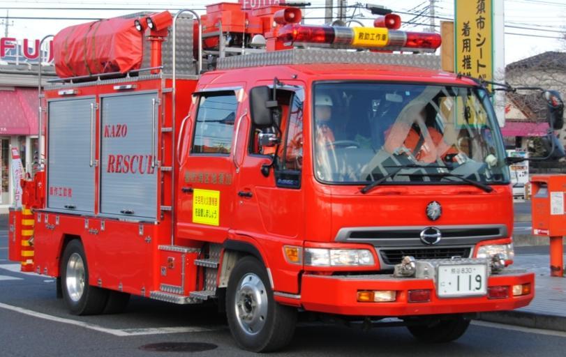 Keywords: Kazo-rescue.jpg ja 加須 区消防組合の救助工 車 own Photo by me Ypy31 2010-01-05 Fire engines of Kazo HINO Ranger 4th generation HINO fire engines Red fire engines