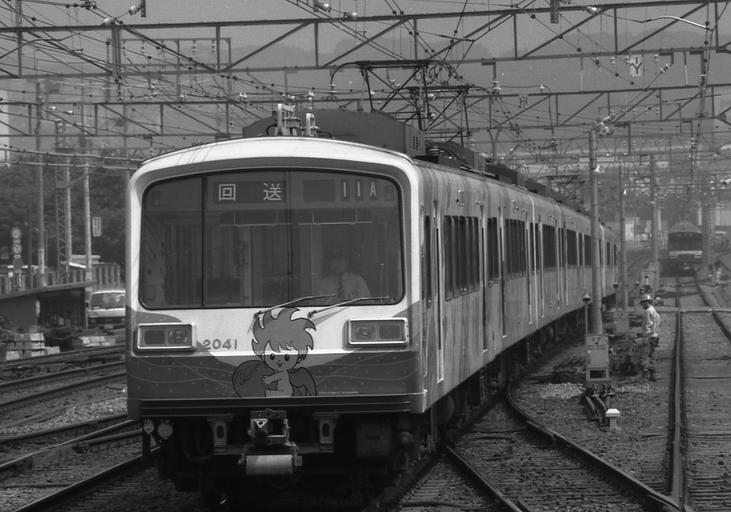 Keywords: Keikyu2041 1989 Hakkei.JPG en Keikyu 2041 passing Kanazawa Hakkei Station ja 金沢八景駅を 過する京 2041編成 Own Hahifuheho 1989-08 cc-zero 1989 in rail transport in Japan Black and white photographs of Japan in the 1980s Keikyu 2000 series Black and white photographs of trains in Japan |