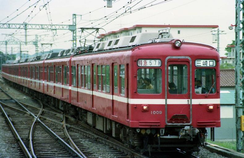 Keywords: Keikyu 1009 to Misakiguchi.jpg ja 京 1009他の特 三崎口行き 三浦海岸駅にて この時 元湘南形の編成で6両編成だったのはこの編成のみ この時 の酷使が影響したのか この編成は冷房車としては も早く廃車されている 下段のアンチクライマが半分しかないのが1001-1048の特徴 en A limited express with Keikyu 1009 to Misakiguchi Taken at Miura Kaigan station This six car unit even though this picture is with additional two cars at the end wat the only six car units consist of carriages built without corridor in front of driving cars at the enof of 1980s Probably because high usage as six car units 100-1012 were withdrawn from the operation as the first withdrawn unit with air conditioners 1988-05 own Hahifuheho cc-zero Uploaded with UploadWizard 1988 in rail transport in Japan Keikyu 1000 series Miura-Kaigan Station |