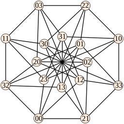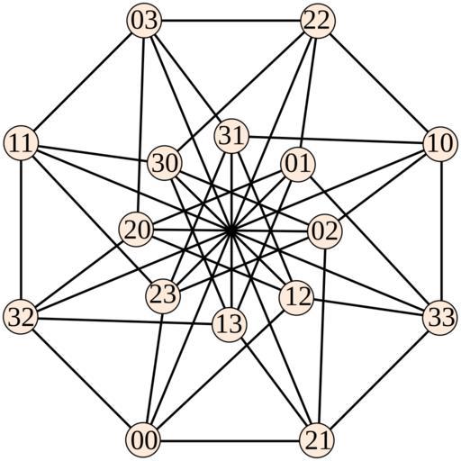 Keywords: Keller-labeled Clebsch.svg Clebsch graph labeled for the reduction of Keller's cube-tiling conjecture to a graph clique problem by Corrádi and Szabó This graph represents the two-dimensional case of the conjecture and the truth of the conjecture for this case follows from the fact that it has no four-vertex clique more strongly it has no triangle However the graphs resulting from higher dimensional versions of the conjecture have large cliques from which it follows that the conjecture it is false 2011-10-05 own David Eppstein cc-zero Files by User David Eppstein from en wikipedia 5-regular Clebsch graph |