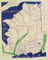Keywords: Keltogalatias kai Galia Beltike kai Germanias Kato kai Ano.jpg en The 3rd European Map depicting France Celtogallia Aquitania Lugdunensis and Narbonensis the Low Countries Gallia Belgica misspelled Beltica and Roman Germany Upper and Lower Germany from an early 15th-century Greek manuscript edition of Ptolemy's Geography http //geoweb venezia sbn it/cms/images/stories/MsGeo/00333 pdf MS Gr Z 388 333 f 57 r from http //geoweb venezia sbn it/cms/en/articles/12-tolomeo-marciano html the collection at Venice's St Mark's Library Biblioteca Nazionale Marciano di Venezia Europa III Gallia Κελτογαλατΐα Ἀκουϊτανΐα και Λυγδουνησία αρβωνησία Κελτογαλατΐα Γαλΐα Βελτϊκή και Γερμανΐα Κατο και Ἄνω Europa III Gallia early 15th century http //www pbslearningmedia org/resource/xir243796/map-of-france-from-geographia-greek-xir243796/ PBS Learning Media Ptolemy other versions <gallery> File Greek world map after Ptolemy's 1st projection jpg world map </gallery> PD-100 Ptolemy's 3rd European Map 1449 Maps in Greek Marciana MS Gr Z 388 Europe 03 ImageNote 1 38 302 127 228 483 600 2 κελτογαλατΐα ακουϊτανια <br> Keltogalatïa Akouïtania ImageNoteEnd 1 ImageNote 2 178 389 245 159 483 600 2 ναρβωνησία κελτογαλατ <br> Narbōnēsía Keltogalat ImageNoteEnd 2 ImageNote 3 169 139 76 244 483 600 2 κελτογαλατΐα λυγδουνησια <br> Keltogalatïa Lugdounēsia ImageNoteEnd 3 ImageNote 4 318 203 95 179 483 600 2 γερμανΐα ἄνω <br> Germanïa Ánō ImageNoteEnd 4 ImageNote 5 341 43 61 155 483 600 2 nowrap γερμανΐα κατο <br> Germanïa Kato ImageNoteEnd 5 ImageNote 6 249 47 81 147 483 600 2 γαλΐα βελτϊκή <br> Galïa Beltïkē ImageNoteEnd 6 |