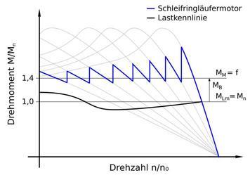 Keywords: Kennlinie schleifringläufer volllast.svg de de Anlassschwere<br/> M<sub>M</sub> Mittleres Anlassmoment <br/> M<sub>n</sub> Nenndrehmoment <br/> M<sub>Lm</sub> Mittleres Lastmoment <br/> M<sub>B</sub> Resultierendes Beschleunigungsmoment<br/> n<sub>0</sub> Netzfrequenz<br/> Own Biezl Inkscape Electric motor graphs |