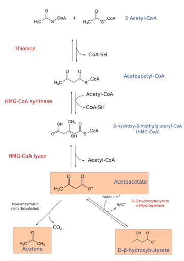 | Keywords: Ketogenesis.svg en Ketogenesis pathway The enzymes are coloured red the substrates/products are coloured blue The three ketone bodies acetoacetate acetone and beta-hydroxy-butyrate are marked within an orange box 2012-09-23 02 37 01 own Sources File Ketogenesis png File Acetyl-CoA svg File Acetoacetyl-CoA svg File Aceton svg File Acetoacetate_to_beta-hydroxybutyrate svg File HMG_coenzyme_A svg Sav vas cc-zero Uploaded with UploadWizard Medical diagrams Metabolic pathways Fatty acids | ||||