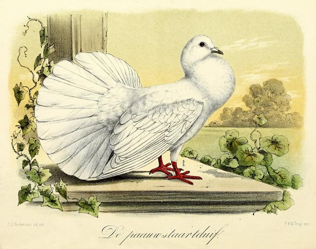 Keywords: Keulemans Onze vogels 1 51.jpg « Columba domestica » Columba livia domestica Domestic pigeon - breed Fantail pigeon « Columba domestica » Columba livia domestica Pigeon domestique - Pigeon paon http //archive org/stream/onzevogelsinhuis01keul page/n399/mode/2up Onze vogels in huis en tuin creator John Gerrard Keulemans 1869 PD-old-100-1923 Fantail pigeons Onze vogels in huis en tuin - vol 1 |