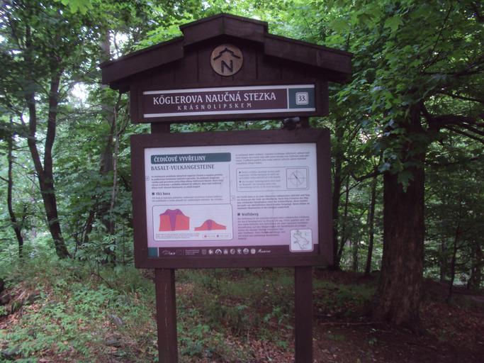 Keywords: KGS 33.JPG cs Poblíž vrcholu Vlčí hora je na trase tabule Köglerovy naučné stezky own Zákupák 2013-06-21 Köglerova naučná stezka Vlčí hora 581 m