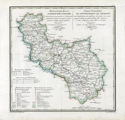 Keywords: Kharkov governorate 1821.jpg Ха ьковская Губе ния Kharkov governorate Геог афический атлас Российской импе ии Ца ства Польского и Великого Княжества Финлянского асположенный по губе ниям на двух языках с означением в онных го одах местечек сель де евень и всех п имичательнийших мест почтовых и больших п оезжих до ог станций и асстояния между оными и п очими селениями в ве стах и милях на 70 листах с Гене альною ка тою и Таблицей асстояния ве ст по почтовым до огам между знатнийшими го одами Сочинен по новейшим и достове ным сведениям в пользу обучающихся Российской Геог афии и для составления до ожников путешественникам служащих Военно-топог афического дела Его Импе ато ского Величества по ква ти мейсте ской части подполковником Пядышевым 1821 Пядышев Василий Пет ович PD-old-100 Geographic Atlas of the Russian Empire Kingdom of Poland and Grand Duchy of Finland 1820-1827 Maps of the history of Russia in Russian Maps uploaded by ShinePhantom from various sources Old maps of Kharkov Governorate 1821 maps of Russia