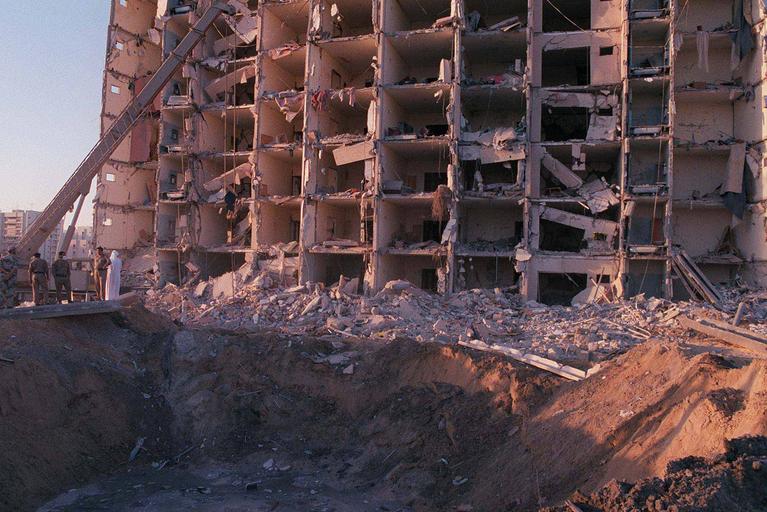 Keywords: Khobar Towers bombing 960626-N-00000-001.jpg en U S and Saudi military personnel survey the damage to Khobar Towers caused by the explosion of a fuel truck outside the northern fence of the facility on King Abdul Aziz Air Base near Dhahran Saudi Arabia at 2 55 p m EDT Tuesday June 25 1996 Several buildings were damaged and there were numerous U S casualties The latest information from Dhahran indicates that 19 people are dead and 64 people are hospitalized Additionally over 200 have been treated for injuries and released The facility houses U S service members and serves as the headquarters for the U S Air Force's 4404th Wing Provisional Southwest Asia 960626-N-00000-001 Navy http //www defense gov/photos/newsphoto aspx newsphotoid 323 1996-06-26 en U S Department of Defence PD-USGov-Military Import by User Slick-o-bot/Defense gov News Photos Khobar Towers bombing |