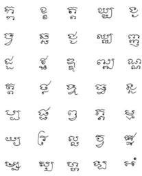 Keywords: Khomthai - alphabeth.png th อักษรขอมไทยพร้อมตัว ชิง จัด รียงพยัญชนะตามหลักภาษาบาลี / สันสกฤต ทียบรูปอักษรไทยได้ดังนี้ วรรค กะ แถวที่ 1 จากบน ก ข ค ฆ ง วรรค จะ แถวที่ 2 จ ฉ ช ฌ ญ วรรค ฏะ แถวที่ 3 ฏ ฐ ฑ ฒ ณ วรรค ตะ แถวที่ 4 ต ถ ท ธ น วรรค ปะ แถวที่ 5 ป พ ภ ม ศษวรรค แถวที่ 6 ย ร ล ว ศ แถวที่ 7 ษ ส ห ฬ อ ขียนด้วยลายมือของ User Xiengyod และอุทิศให้ ป็นสาธารณสมบัติ own Xiengyod 2011-02-23 Xiengyod Khom Thai Script |