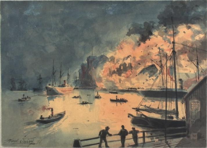 Keywords: Kieler Pakhus i brand 1891 by Karel Sedivy.jpg en Kieler Pakhus The Kiel Warehouse is burning 1891 Royal Library Copenhagen Karel Šedivý 1860-1906 1891 PD-old Karel Šedivý Port of Copenhagen 1891 in Denmark Fires in Denmark Collections of The Royal Library Denmark 1891 fires |