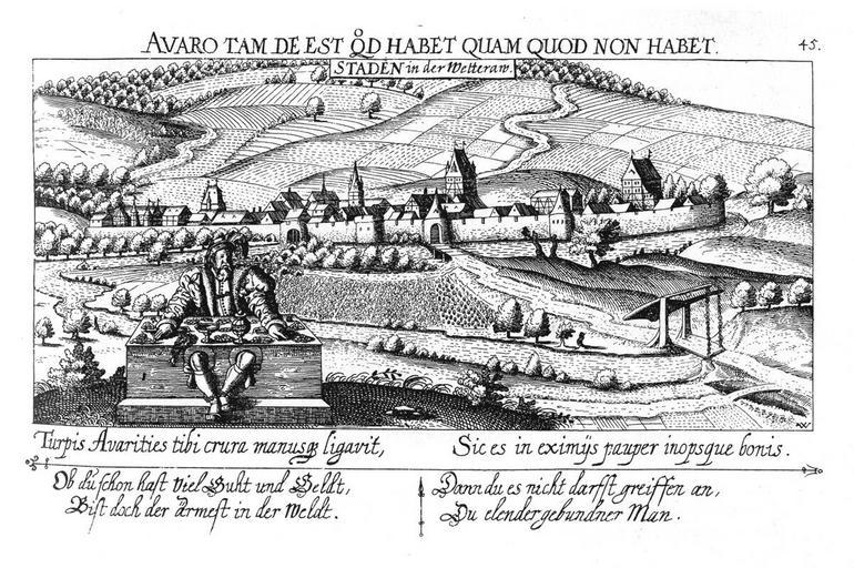 | Keywords: Kieser Staden 1627.jpg de STADEN in der Wetteraw aus Daniel Meisner/ Eberhard Kieser Thesaurus Philopoliticus oder Politisches Schatzkästlein Bd 2 Faksimile-Neudruck der Ausgabe Frankfurt/ Main 1625-1626 u 1627-1631 Nördlingen 1992 Buch 1 Nr 45 http //www lagis-hessen de/de/subjects/idrec/sn/oa/id/724 creator Eberhard Kieser 1627 Staden Florstadt Thesaurus Philopoliticus PD-old-100 | ||||