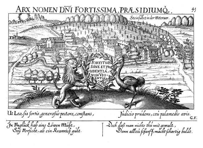| Keywords: Kieser Steinfurth 1624.jpg de Daniel Meisner/ Eberhard Kieser Thesaurus Philopoliticus oder Politisches Schatzkästlein Bd 1 Faksimile-Neudruck der Ausgabe Frankfurt/ Main 1625-1626 u 1627-1631 Nördlingen 1992 Buch 3 Nr 40 http //www lagis-hessen de/de/subjects/idrec/sn/oa/id/3260 creator Eberhard Kieser 1624 Bad Nauheim Thesaurus Philopoliticus Löw ™sches Schloss Steinfurth PD-old-100 | ||||