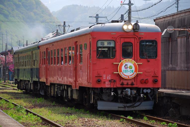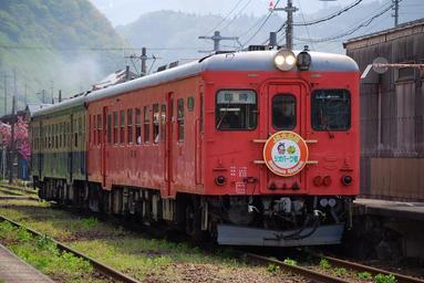 Keywords: Kiha 52 rinji.JPG Kiha 52 series DMU for an irregular train on Oito Line 2010年5 4日大糸線臨時列車として運転されたキハ52形2両 Own toshinori baba 2010-05-04 JNR Kiha 52 JR West Stations of Oito Line JR West