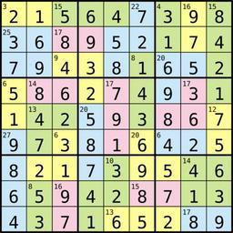 Keywords: Killersudoku color solution.svg Solution for a Killer Sudoku Puzzle solution made with the http //homepage3 nifty com/funahashi/game/game676eng html Killer Sudoku Solver / Sum Number Place Solver Samunamupure online http //bayimg com/fAJNcAaCJ screenshot of solution Killersudoku_color svg 2010-01-09 20 17 UTC Killersudoku_color svg Toon Spin Toon81 derivative work havarhen <span class signature-talk >talk</span> Added the solution Havarhen Killersudoku_color svg </nowiki> Uploaded with derivativeFX Killer sudokus |