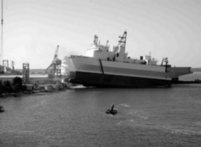 Keywords: Kilo Moana launch, 2001-11-17.jpg en Launch of the U S Navy-constructed R/V Kilo Moana the newest oceanographic research vessel at a ceremony in Jacksonville Florida on November 17 2001 The Kilo Moana is an AGOR26 swath ship that will be operated by the University of Hawaii After completion of sea trials NSF will fund research using the vessel in the latter half of 2002 Photo courtesy of Naval Sea Systems Command http //www nsf gov/pubs/2002/nsf02055/nsf02055_7g htm US Navy 2001-11-17 PD-USGov-Military-Navy Kilo Moana AGOR-26 |