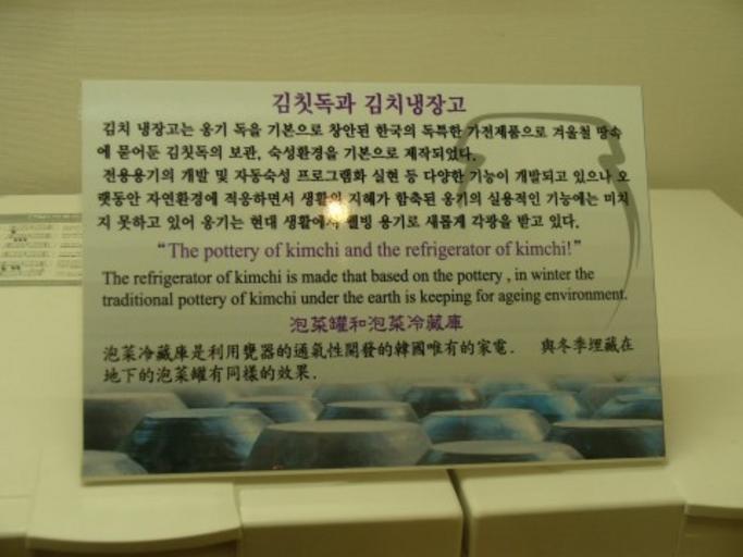 Keywords: KimchiStorageKoreanFolkVillage.jpg Explanation of traditional kimchi storage and the creation of the modern kimchi refrigerator at the Korean Folk Village en wikipedia 2006-09-27 Isaac Crumm wikipedia en Isaac Crumm original upload log page en wikipedia KimchiStorageKoreanFolkVillage jpg 2006-09-27 02 15 Isaac Crumm 480×360×8 44966 bytes <nowiki>Explanation of traditional kimchi storage and the creation of the modern kimchi refrigerator at the Korean Folk Village</nowiki> Korean Folk Village Kimchi |