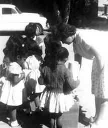Keywords: arizona mennoniteboardofmissions voluntaryservice martha brubacher marthabrubacher kindergarten blackandwhite monochrome black and white Caption: Martha Brubacher, a Mennonite volunteer, with her kindergarten class in Stanfield, Arizona. 1963. Citation: Mennonite Board of Missions Photograph Collection. Mission to Arizona, 1950-1970. IV-10-7.2 Box 1 Folder 54 , photo #20. Mennonite Church USA Archives - Goshen. Goshen, Indiana. Caption: Martha Brubacher, a Mennonite volunteer, with her kindergarten class in Stanfield, Arizona. 1963. Citation: Mennonite Board of Missions Photograph Collection. Mission to Arizona, 1950-1970. IV-10-7.2 Box 1 Folder 54 , photo #20. Mennonite Church USA Archives - Goshen. Goshen, Indiana. |