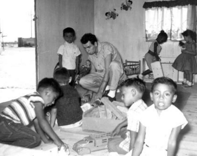 Keywords: arizona mennoniteboardofmissions michael ruchert michaelruchert kindergarten migrants children blackandwhite monochrome room indoor black and white Caption: Michael Ruckert, a Mennonite volunteer, with a kindergarten class in Stanfield, Arizona. 1963. Citation: Mennonite Board of Missions Photograph Collection. Mission to Arizona, 1950-1970. IV-10-7.2 Box 1 Folder 54 , photo #25. Mennonite Church USA Archives - Goshen. Goshen, Indiana. Caption: Michael Ruckert, a Mennonite volunteer, with a kindergarten class in Stanfield, Arizona. 1963. Citation: Mennonite Board of Missions Photograph Collection. Mission to Arizona, 1950-1970. IV-10-7.2 Box 1 Folder 54 , photo #25. Mennonite Church USA Archives - Goshen. Goshen, Indiana. |