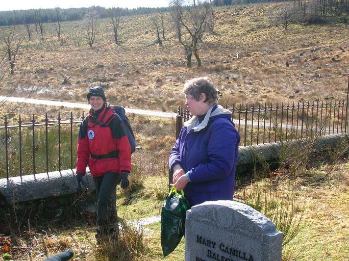 Keywords: Kindrogan Course Tutors.JPG en Course Tutors at the 'family graveyard' above Kindrogan Filed studies centre Enochdu Scotland Own Rosser1954 Roger Griffith 2009-03-27 Perth and Kinross Cemeteries in Scotland Educators People and fences