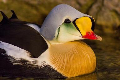 Keywords: king eider duck swimming water wildlife nature bird colorful portrait beak plumage