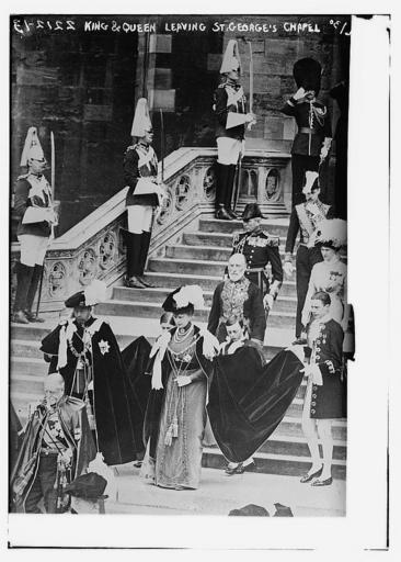 | Keywords: King and Queen leaving St. George's Chapel (LOC).jpg Bain News Service publisher King and Queen leaving St George's Chapel 1911 June 10 1 negative glass ; 5 x 7 in or smaller Notes Title from data provided by the Bain News Service on the negative Photo shows the soon-to-be King of England George V and his wife Mary of Teck leaving the St George's Chapel at Windsor Castle after the Prince of Wales the future Edward VIII was invested with the Order of the Garter This event was one of several state functions leading up to George V's coronation on June 22 1911 at Westminster Abbey Source Flickr Commons project 2008 Forms part of George Grantham Bain Collection Library of Congress Format Glass negatives Rights Info No known restrictions on publication Repository Library of Congress Prints and Photographs Division Washington D C 20540 USA http //hdl loc gov/loc pnp/pp print hdl loc gov/loc pnp/pp print General information about the Bain Collection is available at http //hdl loc gov/loc pnp/pp ggbain hdl loc gov/loc pnp/pp ggbain Higher resolution image is available Persistent URL http //hdl loc gov/loc pnp/ggbain 09328 hdl loc gov/loc pnp/ggbain 09328 Call Number LC-B2- 2212-13 https //www flickr com/photos/library_of_congress/2163490592/ King and Queen leaving St George's Chapel LOC LOC-image ggbain 09328 1911-06-10 https //www flickr com/people/8623220 N02 The Library of Congress http //www loc gov/rr/print/195_copr html noknown The Library of Congress Flickr Commons PD-Bain The Library of Congress https //flickr com/photos/8623220 N02/2163490592 2015-08-04 23 58 56 pd 1910s Annual service of the Order of the Garter Ceremonial robes of the Order of the Garter Pages of Honour George V of the United Kingdom Queen Mary of the United Kingdom in photographs |