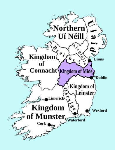 Keywords: Kingdom of Mide-900.svg Created by User ZyMOS for http //historyatlas wikia com/wiki Wiki Atlas of World History Derived from en SVG map of Ireland circa 900 to accompany an article on Early Scandinavian Dublin containing place names territories and battlefields mentioned in that article Own Erigena 2009-05-14 Wiki Atlas of World History County Meath SVG maps of Ireland Maps of the history of Ireland Maps showing 10th-century history Kings of Mide |