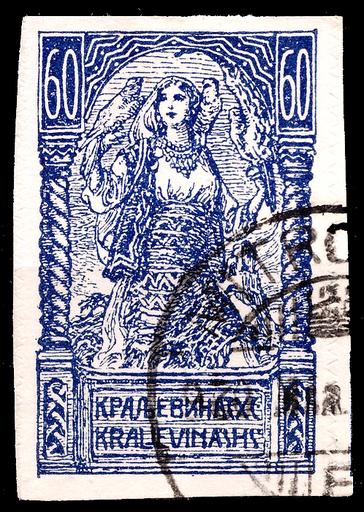 | Keywords: KingdomSHSgirlfalcons60h1919imperf.jpg Verigar issue issued in Slovenian regions of the State of Slovenes Croats and Serbs 60 hellers girl with three falcons 1919 imperforated cancelled Почтовая ма ка из се ии Ве ига выпущена в словенских областях Госуда ства Словенцев Хо ватов и Се бов 50 гелле ов левушка с т емя соколами 1919 без пе фо ации с гашением own collection 1919-04-08 Creator Ivan Vavpotič PD-old-auto 1943 Verigar Females on stamps Falcons on stamps | ||||